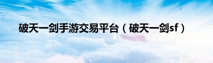 关于破天一剑手游交易平台,破天一剑sf这个很多人还不知道,今天菲菲来为大家解答以上的问题,现在让我们一起来看看吧!