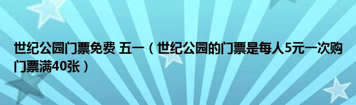 世纪公园门票免费 五一(世纪公园的门票是每人5元一次购门票满40张)