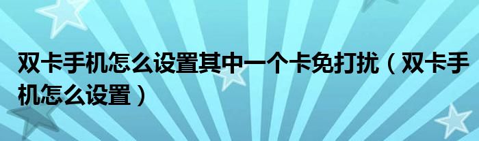 大家好,小晋来为大家解答以下问题,关于双卡手机怎么设置其中一个卡免打扰,双卡手机怎么设置很多人还不知道,今天让我们一起来看看吧!