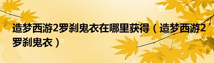 关于造梦西游2罗刹鬼衣在哪里获得,造梦西游2罗刹鬼衣这个很多人还不知道,今天菲菲来为大家解答以上的问题,现在让我们一起来看看吧!