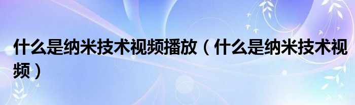 什么是纳米技术视频播放(什么是纳米技术视频)