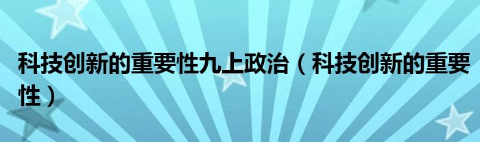 关于科技创新的重要性九上政治,科技创新的重要性这个很多人还不知道,今天菲菲来为大家解答以上的问题,现在让我们一起来看看吧!