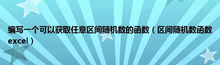 关于编写一个可以获取任意区间随机数的函数,区间随机数函数excel这个很多人还不知道,今天菲菲来为大家解答以上的问题,现在让我们一起来看看吧!