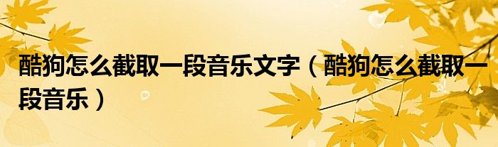 大家好,小晋来为大家解答以下问题,关于酷狗怎么截取一段音乐文字,酷狗怎么截取一段音乐很多人还不知道,今天让我们一起来看看吧!