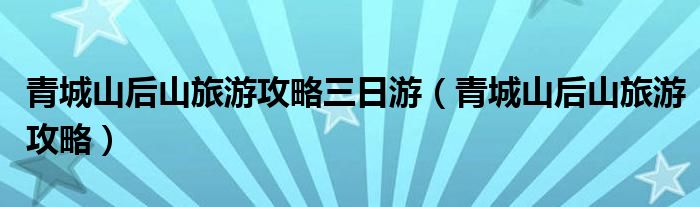 青城山后山旅游攻略三日游(青城山后山旅游攻略)