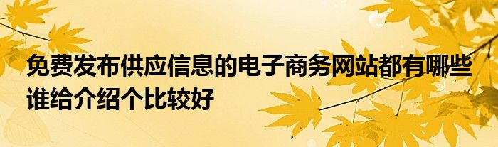 关于免费发布供应信息的电子商务网站都有哪些 谁给介绍个比较好这个很多人还不知道,今天菲菲来为大家解答以上的问题,现在让我们一起来看看吧!