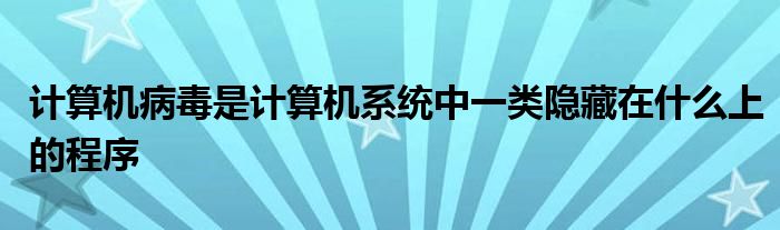 关于计算机病毒是计算机系统中一类隐藏在什么上的程序这个很多人还不知道,今天菲菲来为大家解答以上的问题,现在让我们一起来看看吧!
