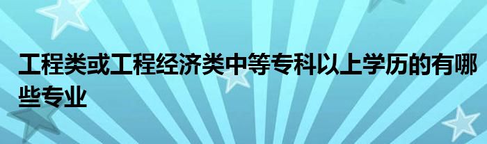 关于工程类或工程经济类中等专科以上学历的有哪些专业这个很多人还不知道,今天菲菲来为大家解答以上的问题,现在让我们一起来看看吧!