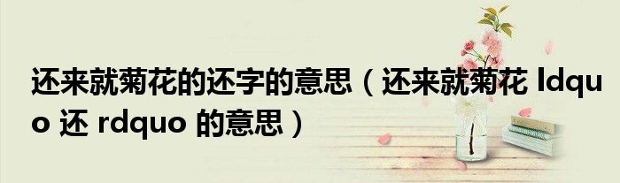 关于还来就菊花的还字的意思,还来就菊花 ldquo 还 rdquo 的意思这个很多人还不知道,今天菲菲来为大家解答以上的问题,现在让我们一起来看看吧!