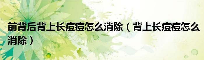 关于前背后背上长痘痘怎么消除,背上长痘痘怎么消除这个很多人还不知道,今天菲菲来为大家解答以上的问题,现在让我们一起来看看吧!