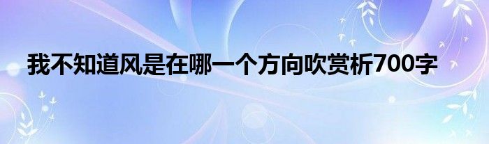 关于我不知道风是在哪一个方向吹赏析700字这个很多人还不知道,今天菲菲来为大家解答以上的问题,现在让我们一起来看看吧!