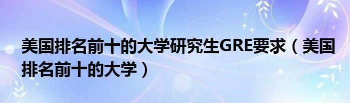 关于美国排名前十的大学研究生GRE要求,美国排名前十的大学这个很多人还不知道,今天菲菲来为大家解答以上的问题,现在让我们一起来看看吧!
