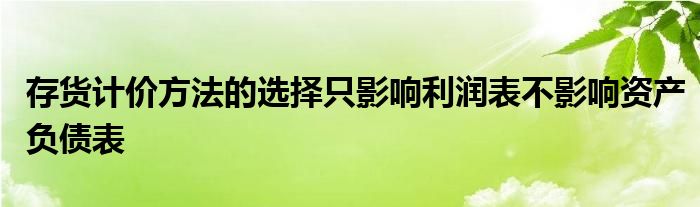 关于存货计价方法的选择只影响利润表不影响资产负债表这个很多人还不知道,今天菲菲来为大家解答以上的问题,现在让我们一起来看看吧!
