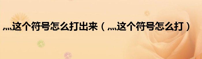 灬这个符号怎么打出来(灬这个符号怎么打)