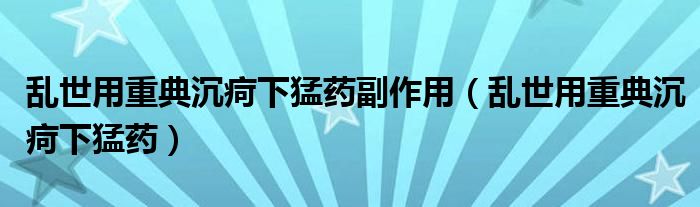 关于乱世用重典沉疴下猛药副作用,乱世用重典沉疴下猛药这个很多人还不知道,今天菲菲来为大家解答以上的问题,现在让我们一起来看看吧!