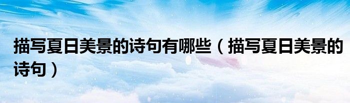 关于描写夏日美景的诗句有哪些,描写夏日美景的诗句这个很多人还不知道,今天菲菲来为大家解答以上的问题,现在让我们一起来看看吧!