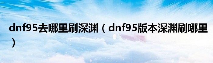 dnf95去哪里刷深渊(dnf95版本深渊刷哪里)