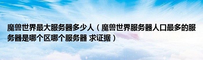 关于魔兽世界最大服务器多少人,魔兽世界服务器人口最多的服务器是哪个区哪个服务器 求证据这个很多人还不知道,今天菲菲来为大家解答以上的问题,现在让我们一起来看看吧!
