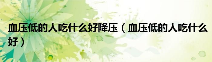 关于血压低的人吃什么好降压,血压低的人吃什么好这个很多人还不知道,今天菲菲来为大家解答以上的问题,现在让我们一起来看看吧!