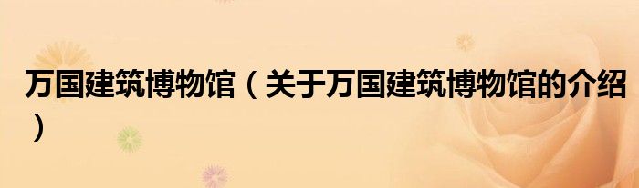 大家好,今天小乐来为大家解答以上的问题。万国建筑博物馆,关于万国建筑博物馆的介绍很多人还不知道,现在让我们一起来看看吧!