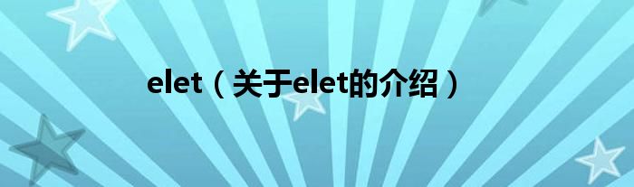 大家好,今天小乐来为大家解答以上的问题。elet,关于elet的介绍很多人还不知道,现在让我们一起来看看吧!