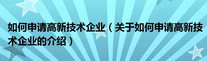 大家好,今天小乐来为大家解答以上的问题。如何申请高新技术企业,关于如何申请高新技术企业的介绍很多人还不知道,现在让我们一起来看看吧!