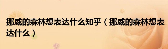 关于挪威的森林想表达什么知乎,挪威的森林想表达什么这个很多人还不知道,今天菲菲来为大家解答以上的问题,现在让我们一起来看看吧!