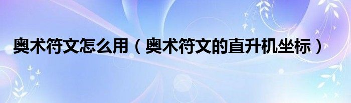 奥术符文怎么用(奥术符文的直升机坐标)