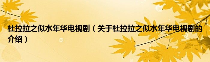杜拉拉之似水年华电视剧(关于杜拉拉之似水年华电视剧的介绍)