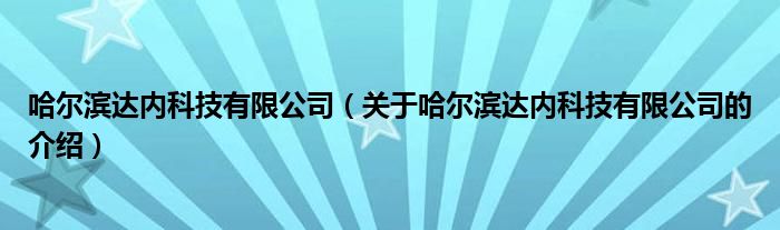 哈尔滨达内科技有限公司(关于哈尔滨达内科技有限公司的介绍)
