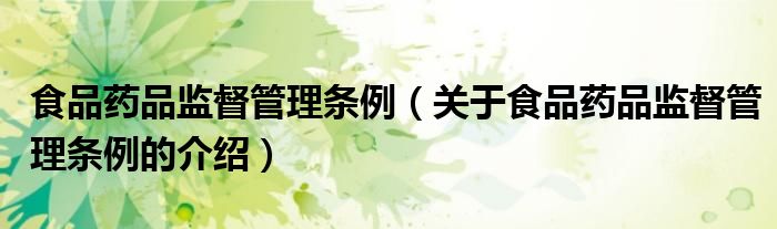 食品药品监督管理条例(关于食品药品监督管理条例的介绍)