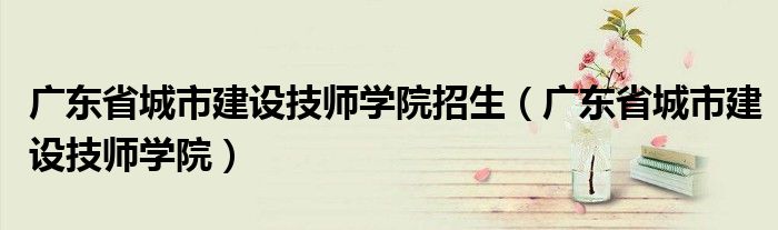 关于广东省城市建设技师学院招生,广东省城市建设技师学院这个很多人还不知道,今天菲菲来为大家解答以上的问题,现在让我们一起来看看吧!