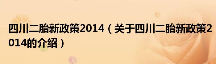 3、四川省单独二胎政策自2014年3月20日正式开始实施。
