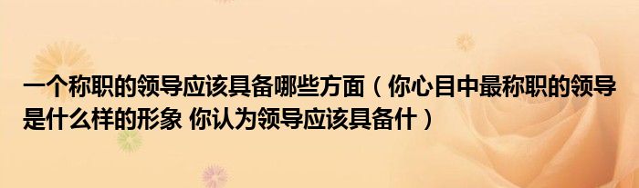 关于一个称职的领导应该具备哪些方面,你心目中最称职的领导是什么样的形象 你认为领导应该具备什这个很多人还不知道,今天菲菲来为大家解答以上的问题,现在让我们一起来看看吧!