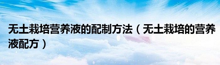 关于无土栽培营养液的配制方法,无土栽培的营养液配方这个很多人还不知道,今天菲菲来为大家解答以上的问题,现在让我们一起来看看吧!