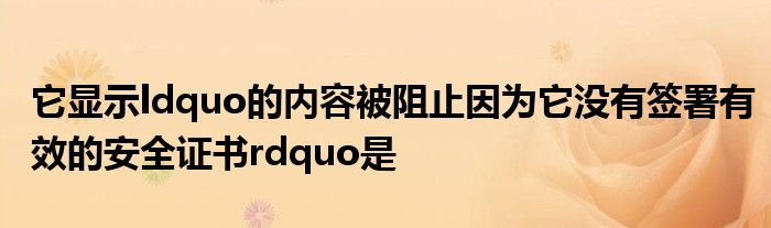 关于它显示ldquo的内容被阻止因为它没有签署有效的安全证书rdquo是这个很多人还不知道,今天菲菲来为大家解答以上的问题,现在让我们一起来看看吧!