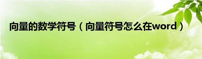 关于向量的数学符号,向量符号怎么在word这个很多人还不知道,今天菲菲来为大家解答以上的问题,现在让我们一起来看看吧!