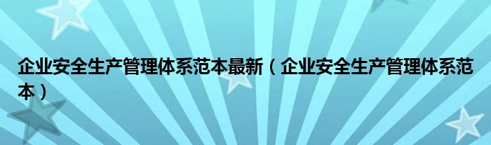 关于企业安全生产管理体系范本最新,企业安全生产管理体系范本这个很多人还不知道,今天菲菲来为大家解答以上的问题,现在让我们一起来看看吧!