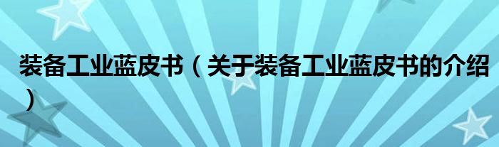大家好,今天小乐来为大家解答以上的问题。装备工业蓝皮书,关于装备工业蓝皮书的介绍很多人还不知道,现在让我们一起来看看吧!