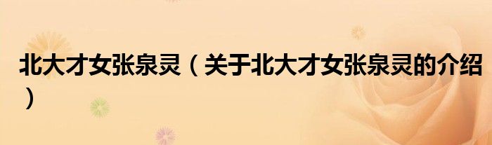 大家好,今天小乐来为大家解答以上的问题。北大才女张泉灵,关于北大才女张泉灵的介绍很多人还不知道,现在让我们一起来看看吧!