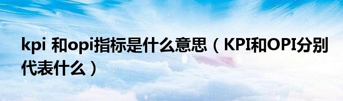 关于kpi 和opi指标是什么意思,KPI和OPI分别代表什么这个很多人还不知道,今天菲菲来为大家解答以上的问题,现在让我们一起来看看吧!