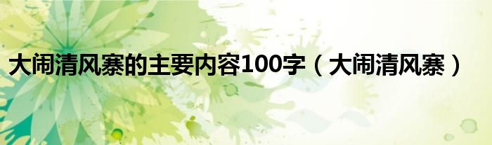 关于大闹清风寨的主要内容100字,大闹清风寨这个很多人还不知道,今天菲菲来为大家解答以上的问题,现在让我们一起来看看吧!