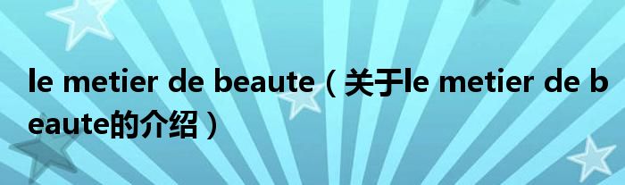 大家好,今天小乐来为大家解答以上的问题。le metier de beaute,关于le metier de beaute的介绍很多人还不知道,现在让我们一起来看看吧!