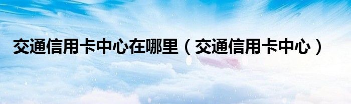 关于交通信用卡中心在哪里,交通信用卡中心这个很多人还不知道,今天菲菲来为大家解答以上的问题,现在让我们一起来看看吧!