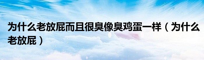 关于为什么老放屁而且很臭像臭鸡蛋一样,为什么老放屁这个很多人还不知道,今天菲菲来为大家解答以上的问题,现在让我们一起来看看吧!