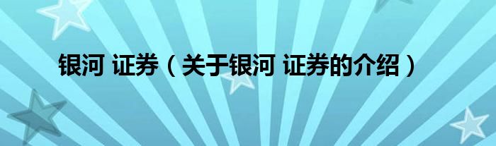 大家好,今天小乐来为大家解答以上的问题。银河 证券,关于银河 证券的介绍很多人还不知道,现在让我们一起来看看吧!