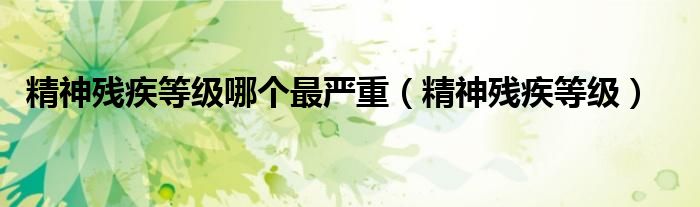 关于精神残疾等级哪个最严重,精神残疾等级这个很多人还不知道,今天菲菲来为大家解答以上的问题,现在让我们一起来看看吧!