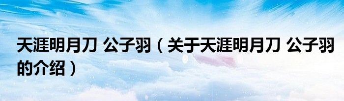 大家好,今天小乐来为大家解答以上的问题。天涯明月刀 公子羽,关于天涯明月刀 公子羽的介绍很多人还不知道,现在让我们一起来看看吧!