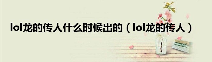 大家好,小晋来为大家解答以下问题,关于lol龙的传人什么时候出的,lol龙的传人很多人还不知道,今天让我们一起来看看吧!