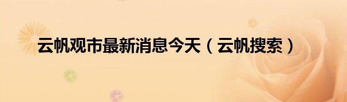 云帆观市最新消息今天,云帆搜索很多人还不知道,乐乐来为大家解答以上问题,现在让我们一起来看看吧!